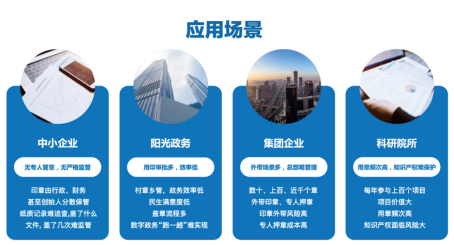 云章智能印章針對傳統公章使用管理模式存在的安全隱患,瞄準政企單位用章管理風險的痛點,通過物聯網、云平臺等數字化方式,實現用章過程可防控、可監管、可查詢、可追溯,解決監管用章、異地用章等難題,降低印章管理風險,提升用章安全與用章效率。