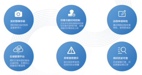 云章智能印章改變了傳統(tǒng)印章管理模式,使印章可遠(yuǎn)程實(shí)時(shí)管控,蓋章前、中、后全程監(jiān)控記錄,責(zé)權(quán)清晰、控制印章風(fēng)險(xiǎn)。為企事業(yè)單位資產(chǎn)保護(hù)、用章規(guī)范化、信息化提供保障。