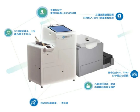 企業(yè)公章被偽造不僅會(huì)讓犯罪分子有機(jī)可乘,對(duì)企業(yè)運(yùn)營和發(fā)展帶來極大風(fēng)險(xiǎn),偽造實(shí)習(xí)證明也會(huì)讓企業(yè)信譽(yù)受損。企業(yè)印章安全決定了企業(yè)資金的安全。企業(yè)印章安全管理,對(duì)保護(hù)市場主體合法權(quán)益、穩(wěn)定投資預(yù)期至關(guān)重要。如今許多有大批量蓋章需求的企業(yè)都引用了集掃描、打印、審批、蓋章、鑒偽多功能于一體的智能印控機(jī)。