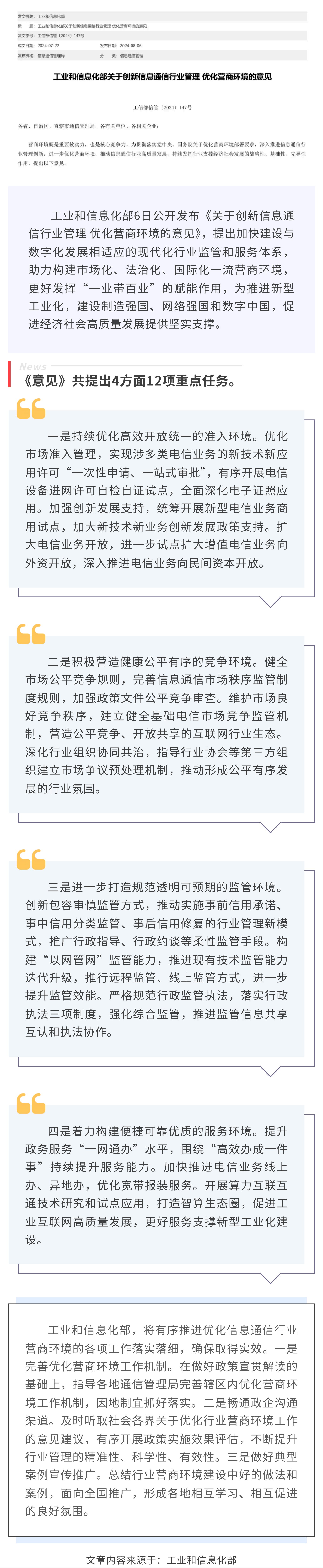 工業(yè)和信息化部發(fā)布《關(guān)于創(chuàng)新信息通信行業(yè)管理 優(yōu)化營(yíng)商環(huán)境的意見(jiàn)》