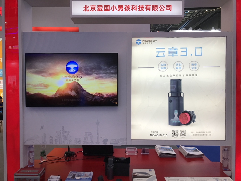 在展會現(xiàn)場,由愛國小男孩科技工作人員為到訪領(lǐng)導(dǎo)介紹了云章產(chǎn)品的實用及創(chuàng)新性。作為一家高新技術(shù)企業(yè),云章由線下印章與線上APP相結(jié)合的智能印章一體化解決方案的展示,以及軟硬件創(chuàng)新能力,得到現(xiàn)場眾多領(lǐng)導(dǎo)的認可。
