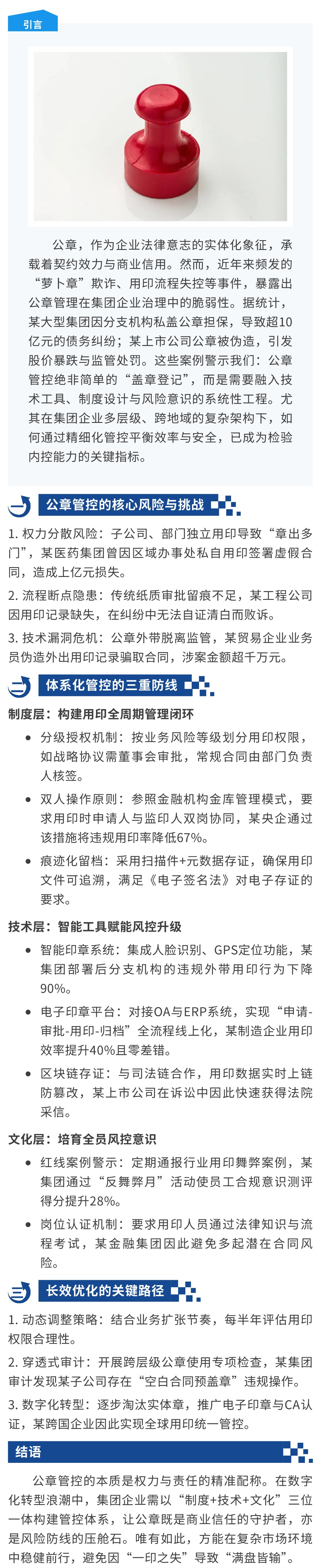 筑牢用印安全防線——集團企業公章管控的體系化實踐
