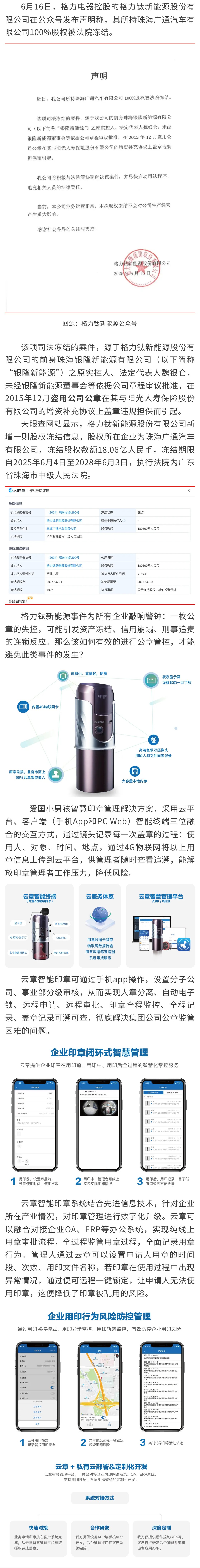 格力鈦新能源18億股權被凍結 牽出原實控人盜用公章舊案