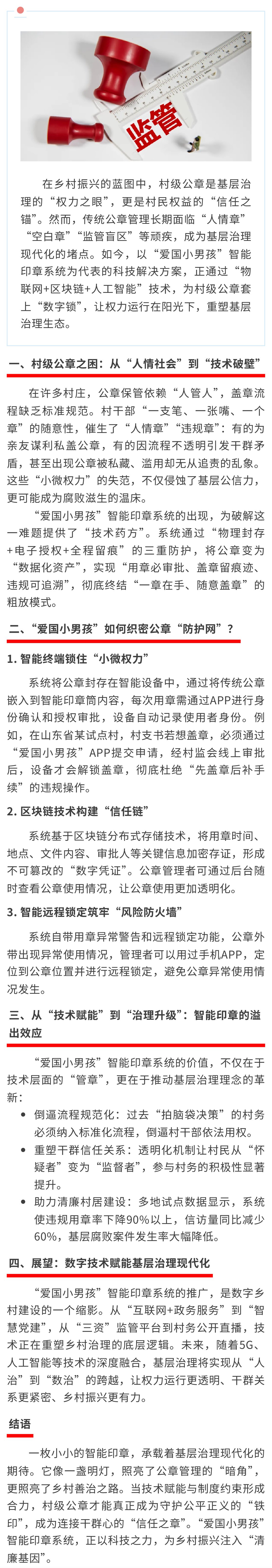 愛國小男孩”智能印章:以科技之鎖守護村級公章陽光運行